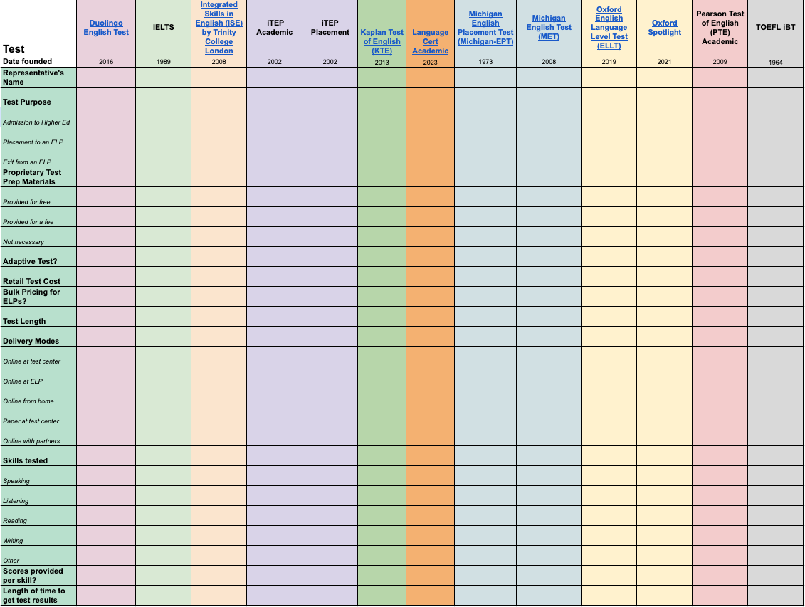 This resource is designed to save you time, strengthen your advising, and provide your program with the insight needed to make informed choices when navigating the evolving world of English proficiency testing.